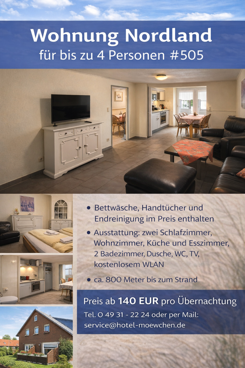 Wohnung Nordland 2 in Norddeich für 4 Personen mit zwei Schlafzimmern